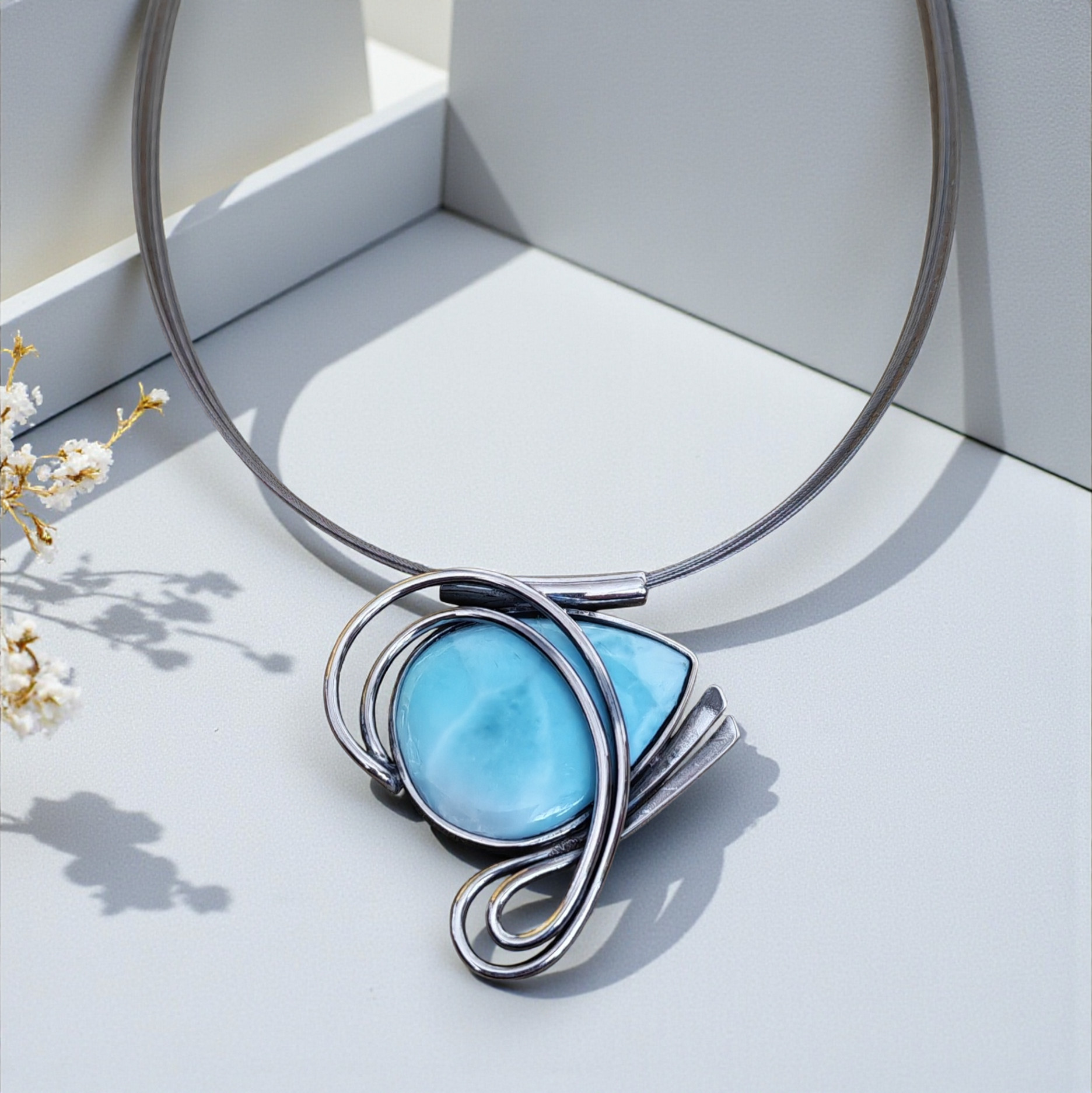 Halsschmuck mit dem Besatz Larimar