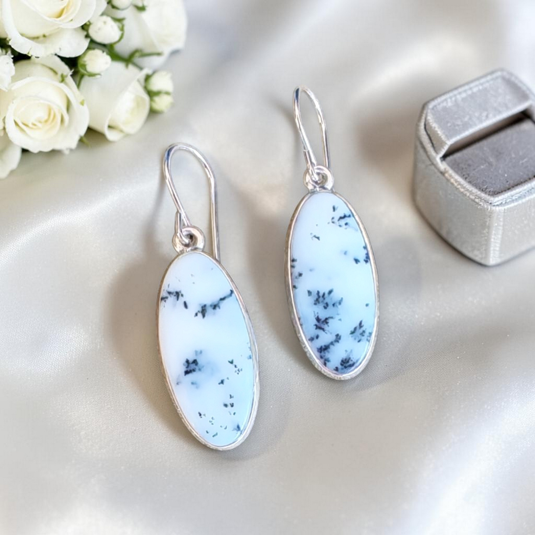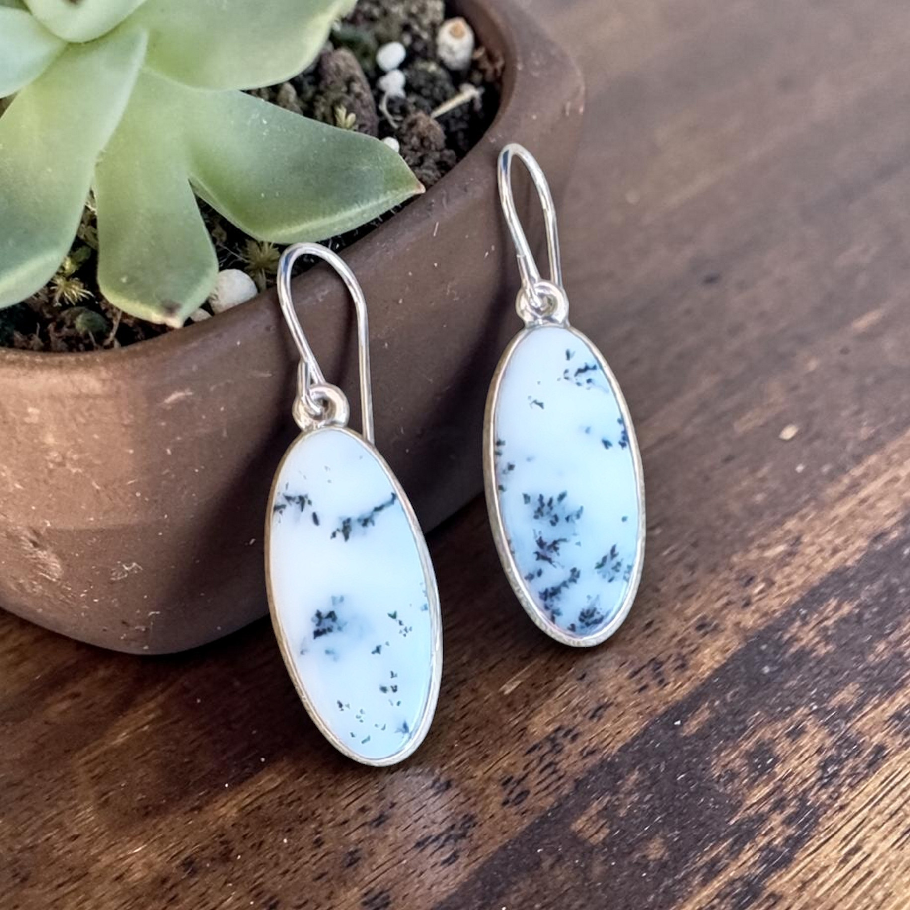 Ohrhänger mit Dendritenjaspis in 925 Silber