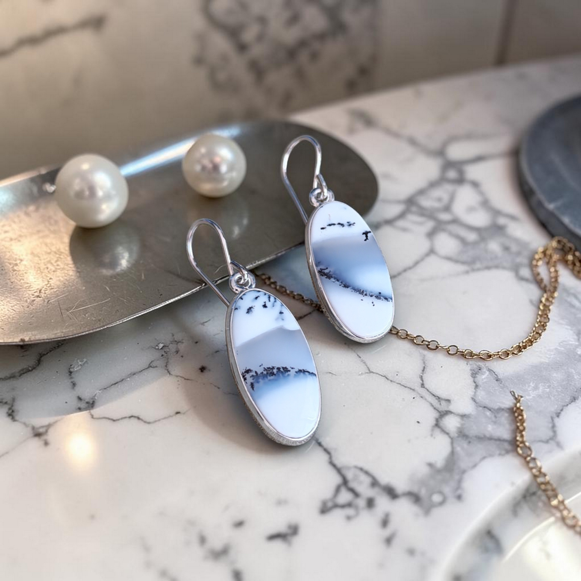 Ohrhänger mit dem Besatz Dendritenjaspis